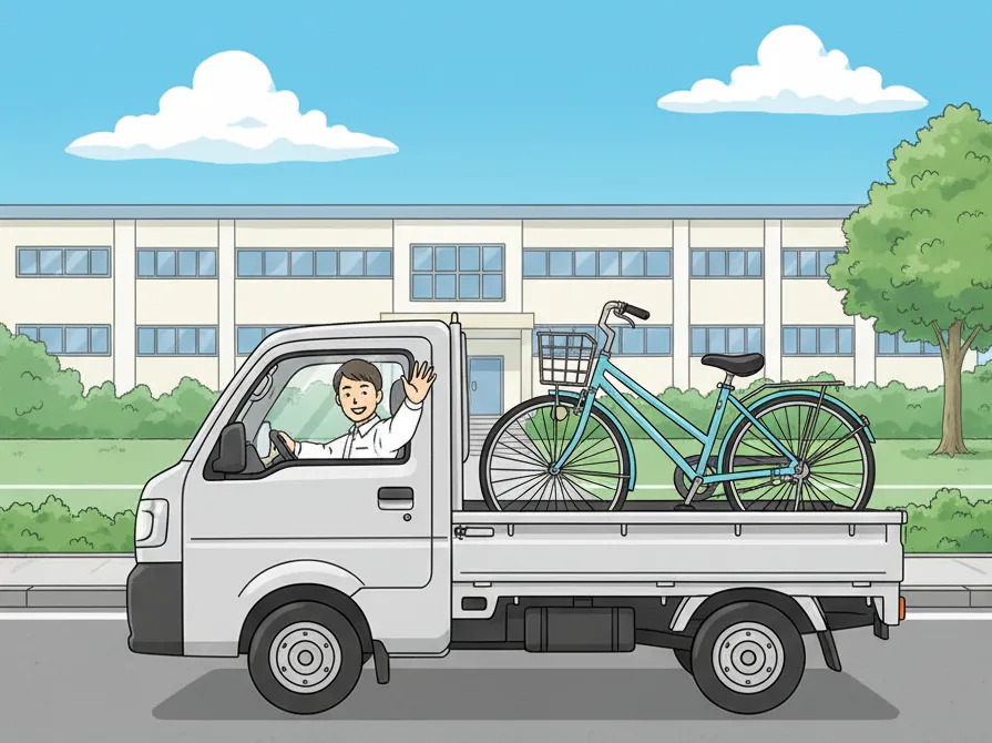 出張・回収(片道): 当店スタッフが代車をお持ちし、各校へお伺いします。故障車を回収し、生徒さんには代車と交換でお貸しします。